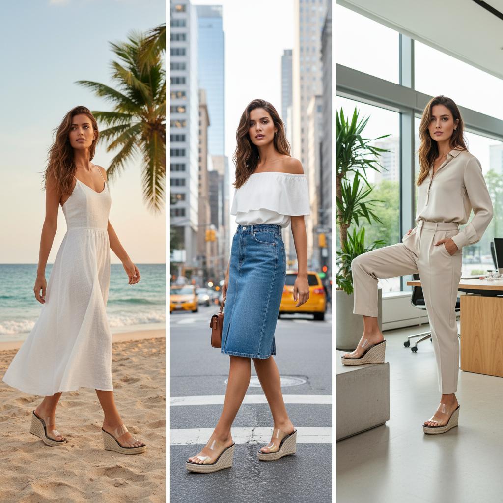 These wedge sandals feature an ergonomic design, with a stylish open-toe style that complements any outfit. Their comfortable fit and sophisticated look make them ideal for summer outings.